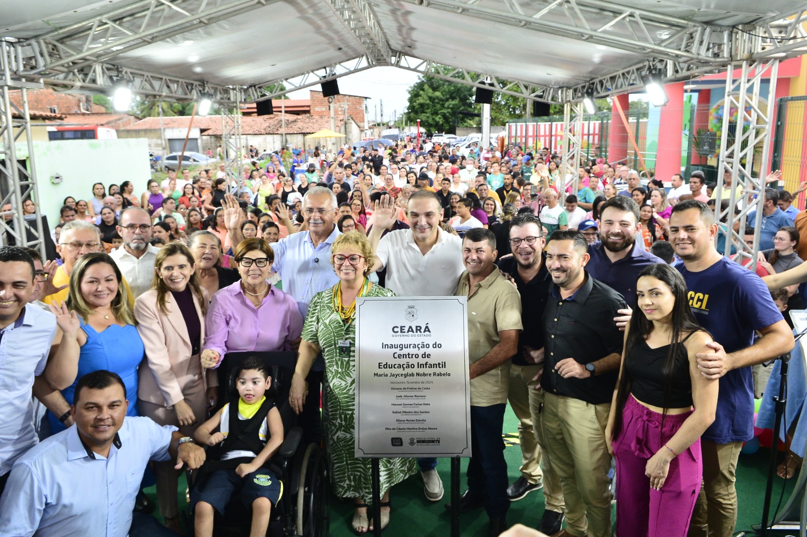 A Prefeitura de Horizonte, em parceria com o Governo do Estado do Ceará, inaugurou, nesta sexta-feira (23/02), mais um Centro de Educação Infantil (CEI). A nova unidade, Maria Jayceglab Nobre Rabelo, fica na rua Tenente Sebastião Soares de Freitas, 486, no Distrito Industrial (Pica Pau). O espaço, o qual vai receber crianças a partir de 2 anos, é o segundo dos 5 CEIs que serão entregues nesta gestão, no Município. O evento contou com a presença da secretária estadual de Educação Eliana Estrela.